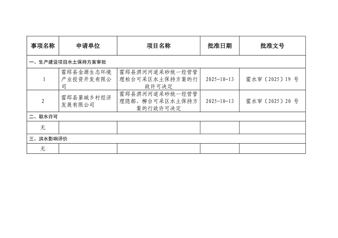 | 名 稱: | 霍邱縣水利局2025年10月行政許可結果 |